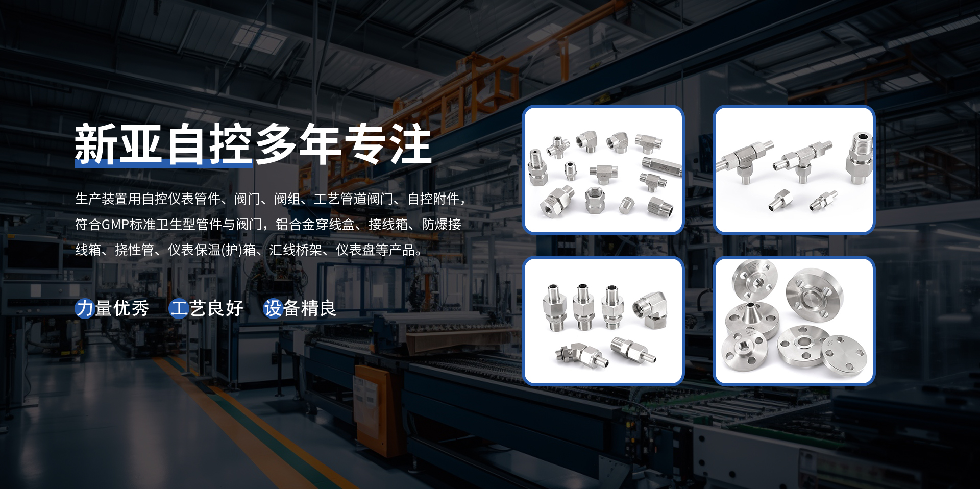 揚中新亞自控工程有限公司,成立于1995年,地處繁榮富庶的長江金三角,座落在聞名遐邇的水上花園城市、生態(tài)示范區一揚中市。東傍上海和蘇、錫、常,西臨南京,南屬鎮江,北望揚州,環(huán)境優(yōu)美,交通便捷,區域位置良好。公司以市場為導向,引進現代化技術,發(fā)展壯大本土企業(yè),生產與歐、美、國產等裝置用自控儀表管件、閥門、閥組、工藝管道閥門、自控附件,符合GMP標準衛(wèi)生型管件與閥門,內燃機配件、儀器儀表、橋架、五金、橡膠制品等產品。